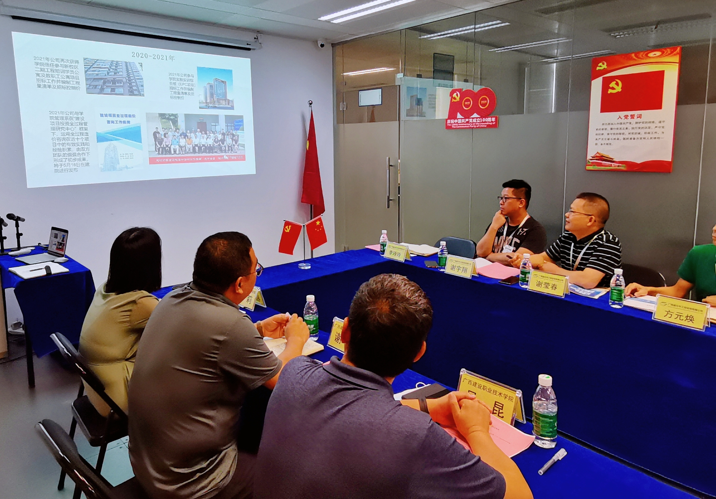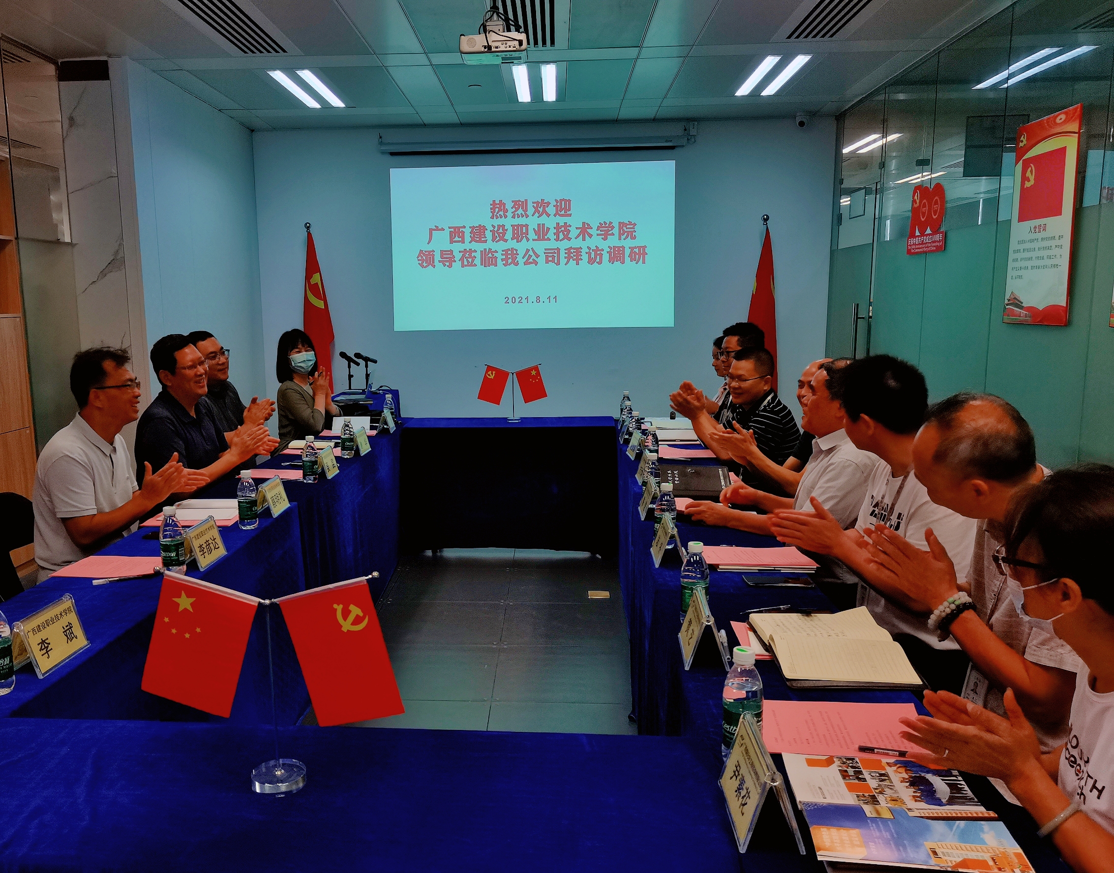 為進(jìn)一步深化產(chǎn)教融合,促進(jìn)校企合作全面發(fā)展,8月11日下午,由廣西建設(shè)職業(yè)技術(shù)學(xué)院黨委副書記、院長吳昆帶隊(duì),一行共6人赴我公司拜訪調(diào)研。